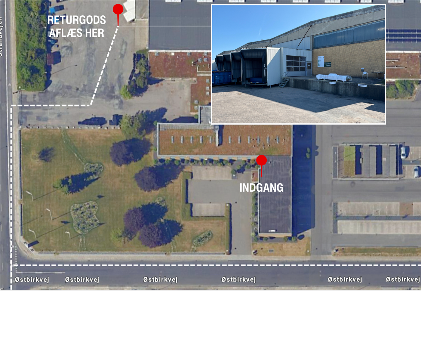 Gå ind ad døren og kontakt vores kollegaer i varemodtagelsen ved ankomst og følg deres anvisninger. Ring på dørklokken, der er placeret lige inden for døren, så kommer hjælpen. Kun varer i original emballage i samme stand som ved levering kan returneres. Dette kan kun ske ved forudgående aftale med Termic Plus. Du (kunden) afholder alle udgifter forbundet med returfragten. Ønsker du at returnere varer uden for tidsrummet ml. kl. 8.00 og 14.00, skal dette aftales på forhånd.
