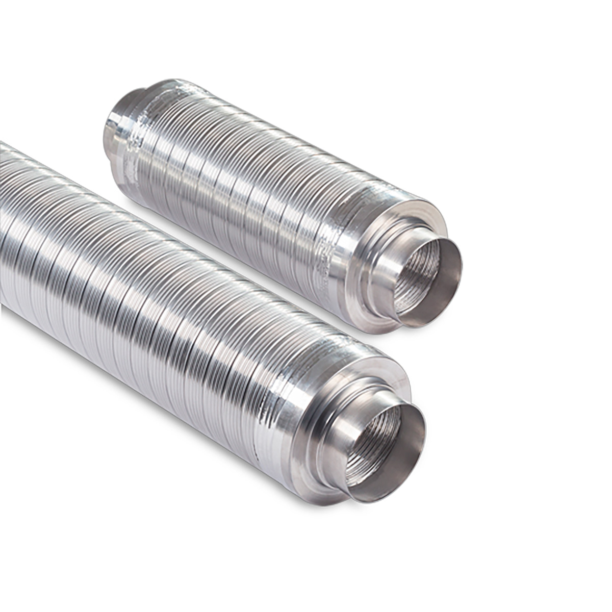 Semifaste lyddæmpere i kraftig aluminium og med 50 mm glasuldsisolering. Den interne perforerede alu-plade lader isoleringen dæmpe og absorbere lyden, der kommer fra ventilationssystemet.