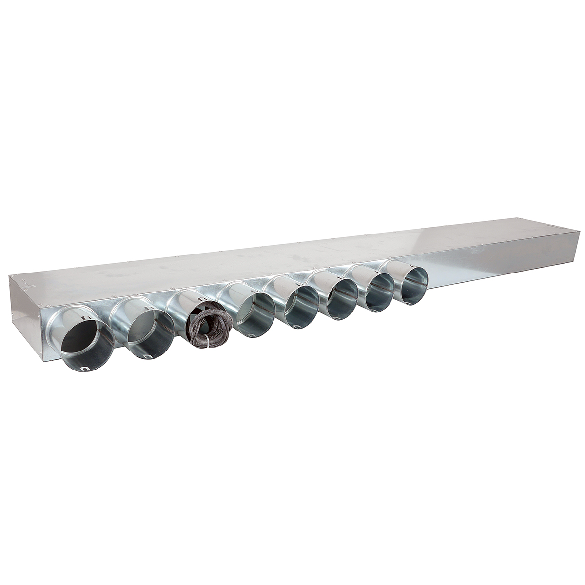 TriaAir galvaniseret fordelerboks u/nippel og med 8 stk. Ø75 mm muffer. Fordelerboksen anvendes til gulv- og operatørrumsmontage.
